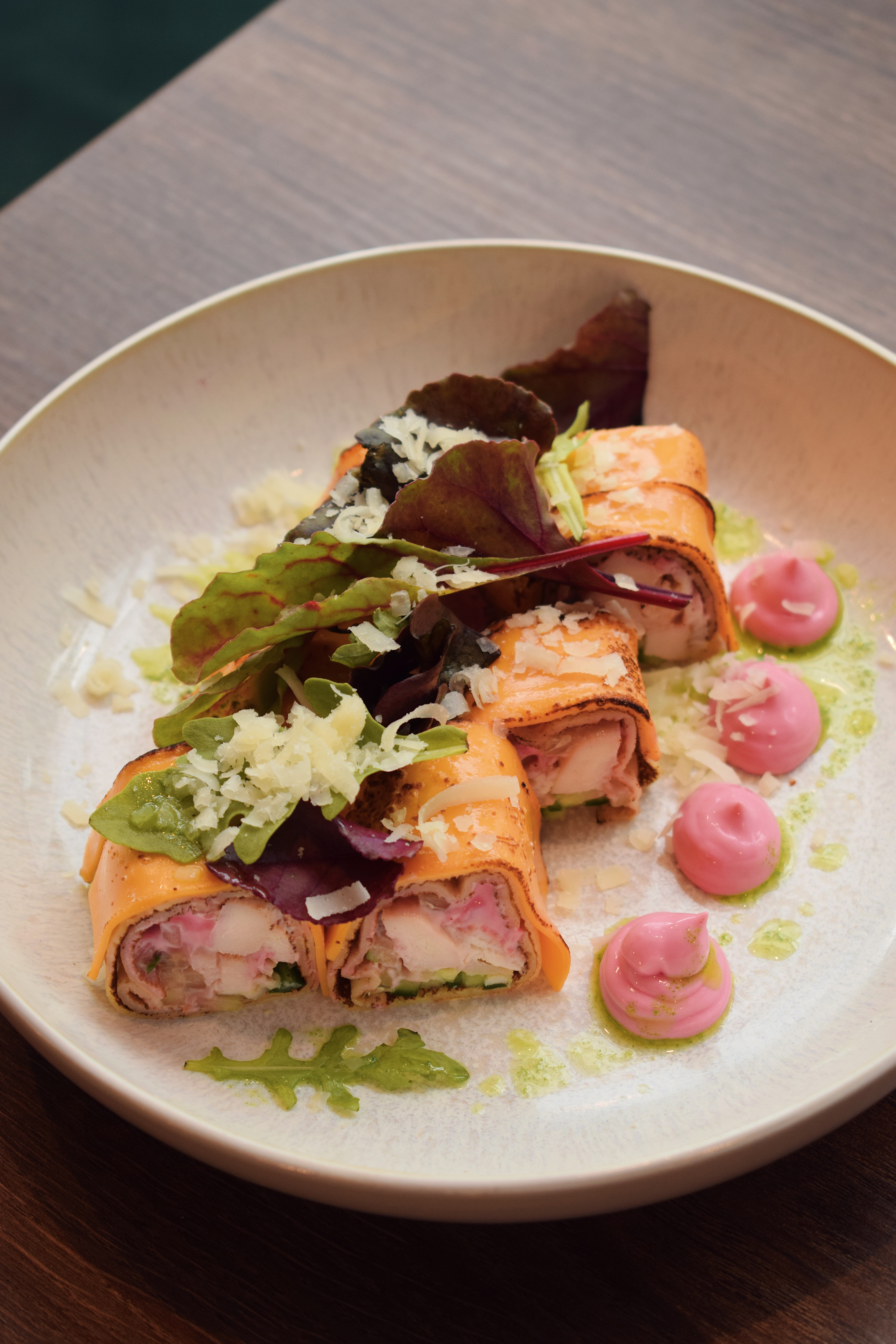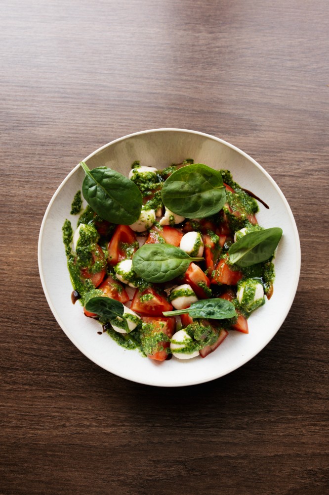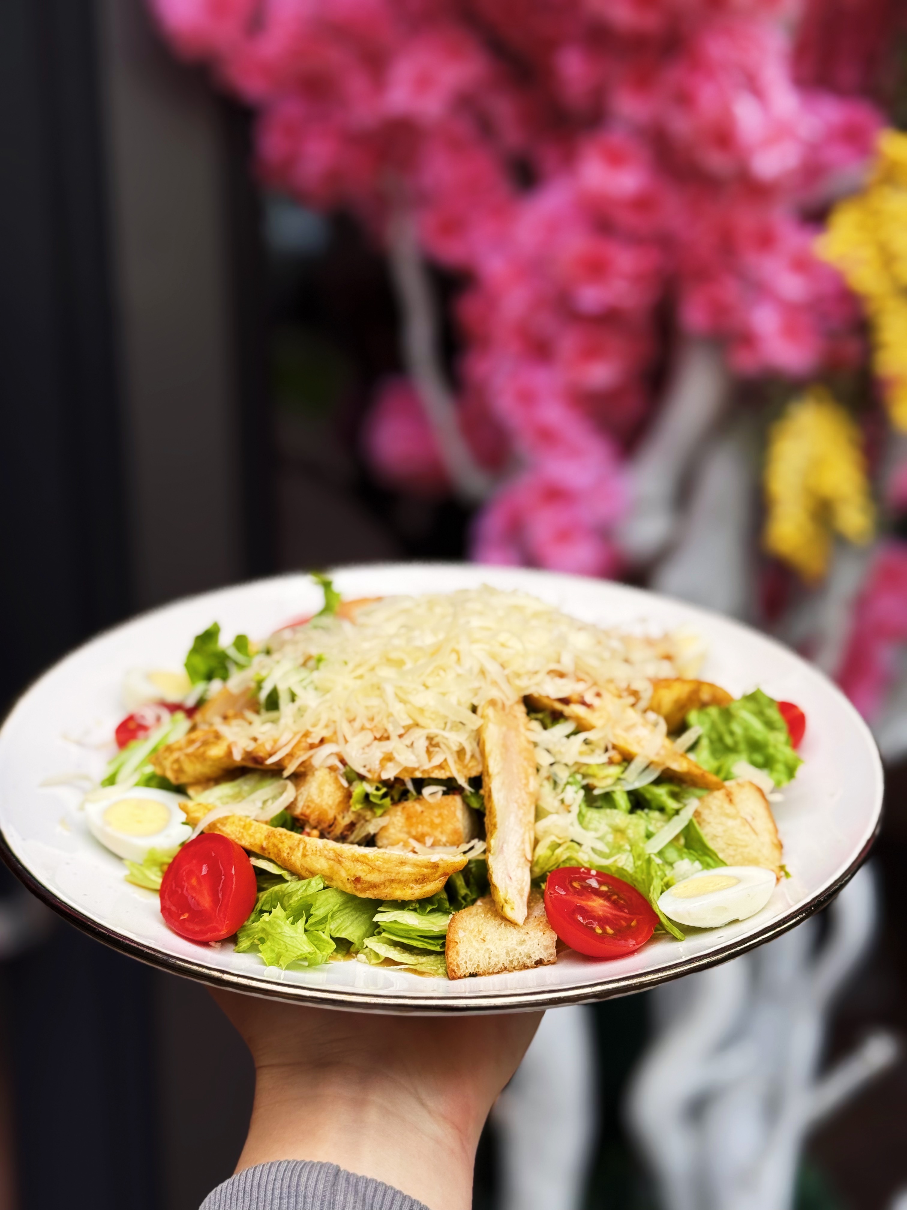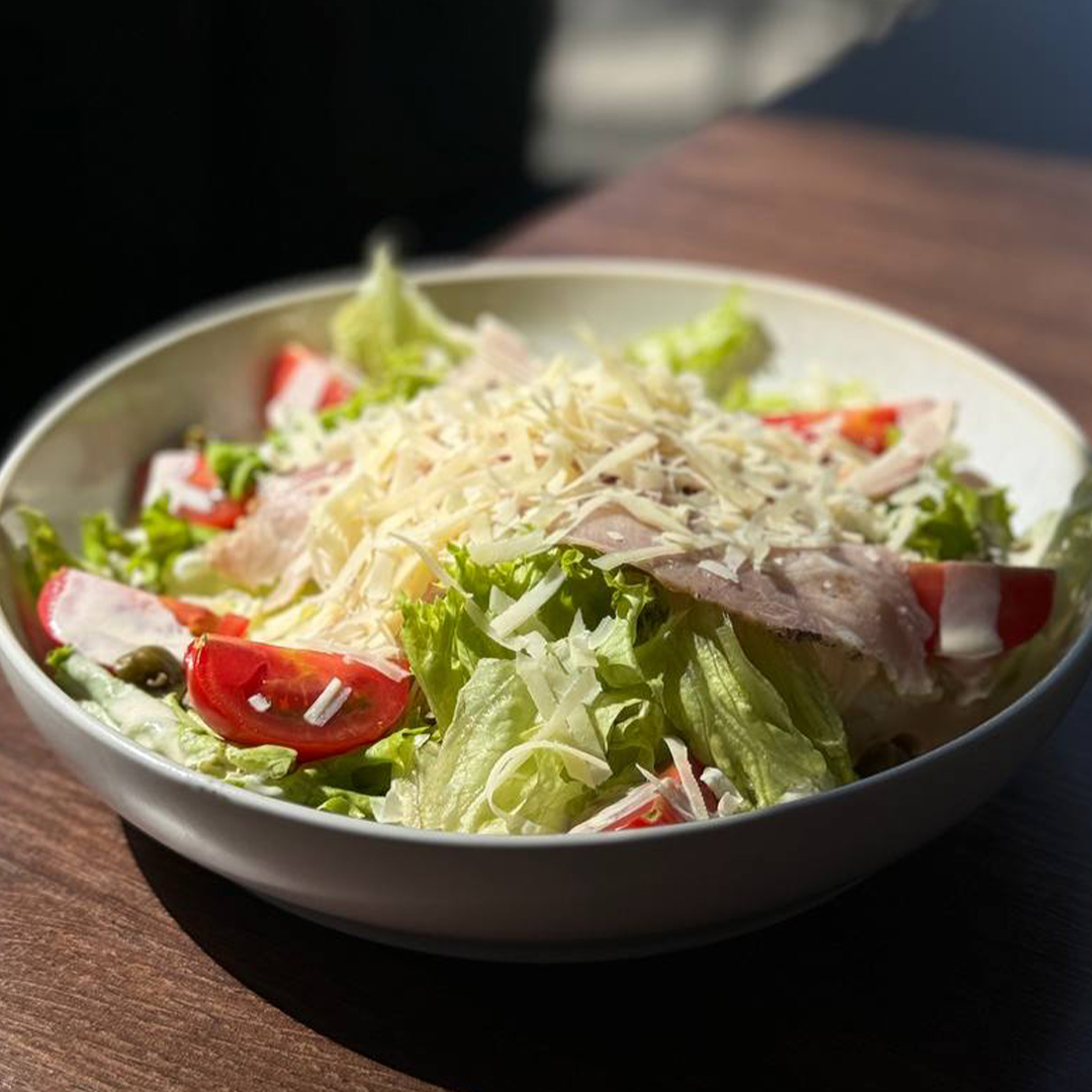 айсберг, лист салату, креветки, пармезан, чері, соус цезарь, яйце перепелине