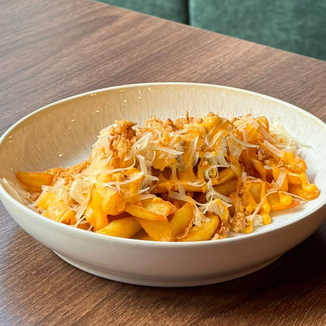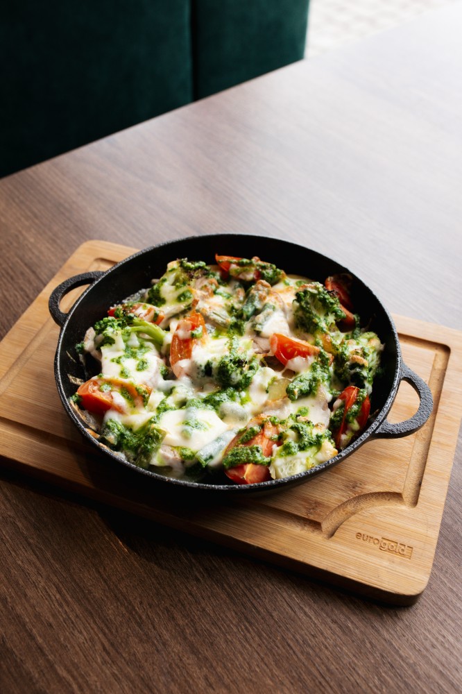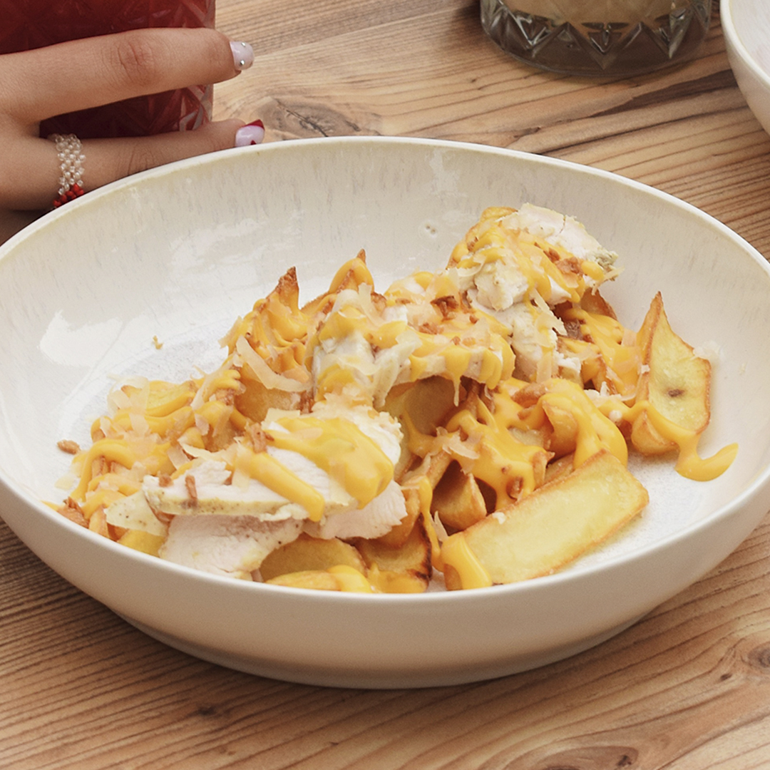 Курка з картопляними діпами та сирним соусом