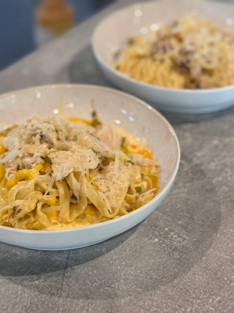 Паста сирна з куркою та кукурудзою