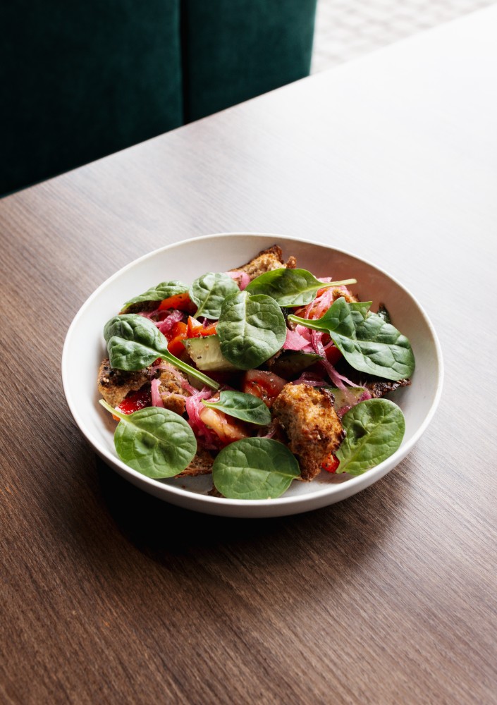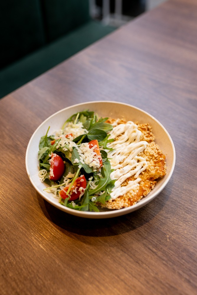 Салат з шніцелем і блакитним соусом